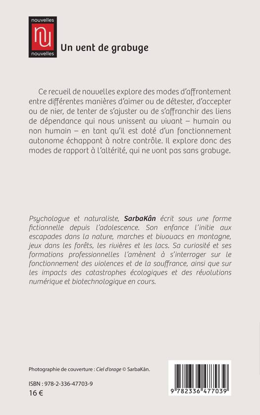 Ce recueil de nouvelles explore des modes d'affrontement entre différentes manières d'aimer ou de détester, d'accepter ou de nier, de tenter de s'ajuster ou de s'affranchir des liens de dépendance qui nous unissent au vivant - humain ou non humain - en tant qu'il est doté d'un fonctionnement autonome échappant à notre contrôle. Il explore donc des modes de rapport à l'altérité, qui ne vont pas sans grabuge.