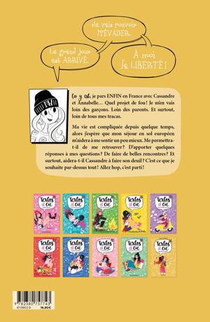 Le grand jour est arrivé. Je vais pouvoir m’évader. À moi la liberté ! Ça y est, je pars ENFIN en France avec Cassandre et Annabelle… Quel projet de fou ! Je m’en vais loin des garçons. Loin des parents. Et surtout, loin de tous mes tracas. Ma vie est compliquée depuis quelque temps, alors j’espère que mon séjour en sol européen m’aidera à me sentir un peu mieux. Me permettra-t-il de me retrouver ? D’apporter quelques réponses à mes questions ? De faire de belles rencontres ? Et surtout, aidera-t-il Cassandre à faire son deuil ? C’est ce que je souhaite par-dessus tout ! Allez hop, c’est parti !