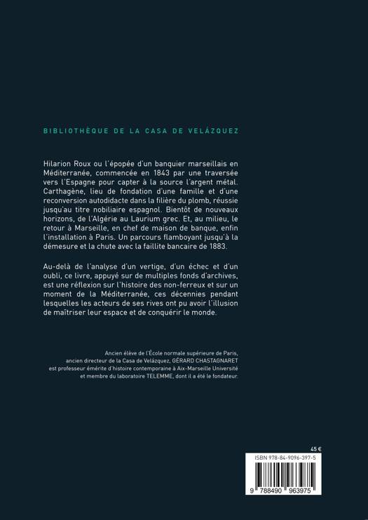 Hilarion Roux, banquier marseillais proche des Rothschild, venu en Espagne en 1843 pour la captation de l'argent métal, marié et anobli à Carthagène, fut un pionnier de la minéro-métallurgie espagnole. Il étendit ses activités à l'ensemble de la Méditerranée et fut notamment à l'origine de la réouverture des mines grecques du Laurium avant de connaître une faillite retentissante en 1883. Au-delà de sa trajectoire flamboyante, le marquis d'Escombreras représente un moment exceptionnel de la Méditerranée minière.