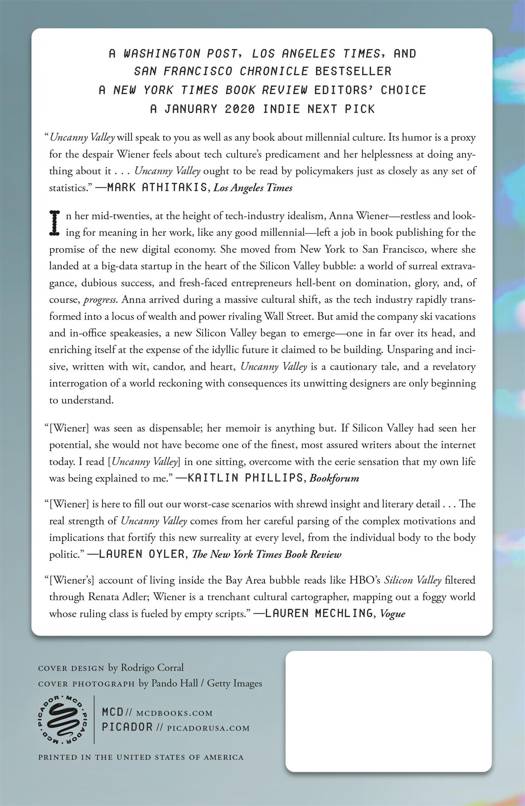 Uncanny Valley is a cautionary tale, and a revelatory interrogation of a world reckoning with consequences its unwitting designers are only beginning to understand.