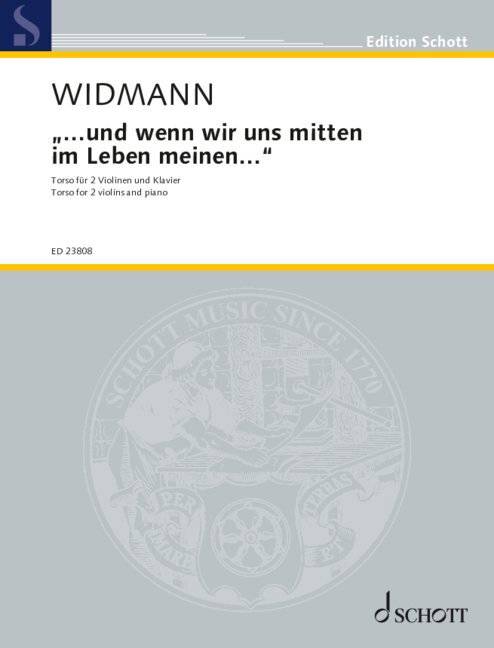 Inspired by Rainer Maria Rilke's poem Schlußstück Widmann created an In Memoriam for the pianist and conductor Lars Vogt with this work for two violins and piano. Widmann ends the piece hauntingly „Wie aus dem Jenseits“ with the imitation of an expiring music box in the piano. Instrumentation: 2 violins and piano