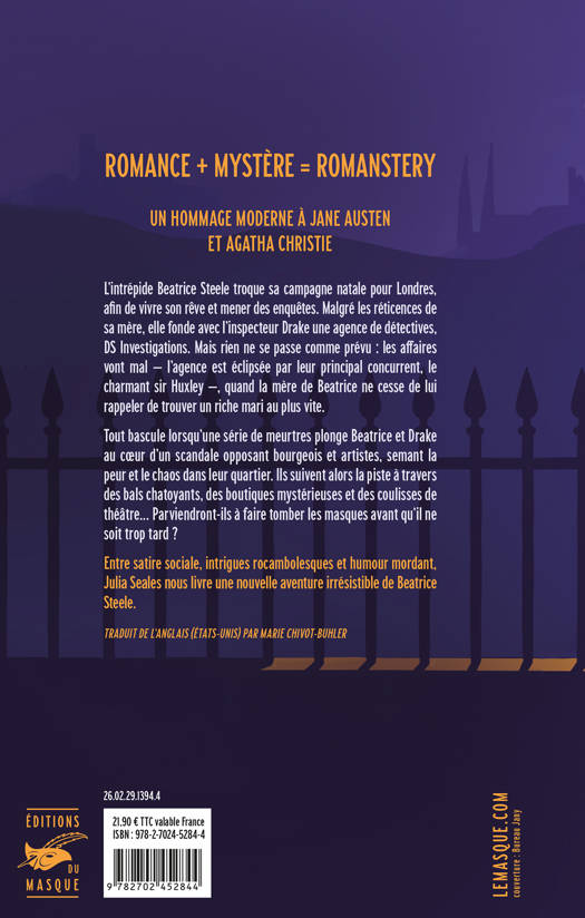 Entre satire sociale, intrigues rocambolesques et humour mordant, Julia Seales nous livre une nouvelle aventure irrésistible de Beatrice Steele.