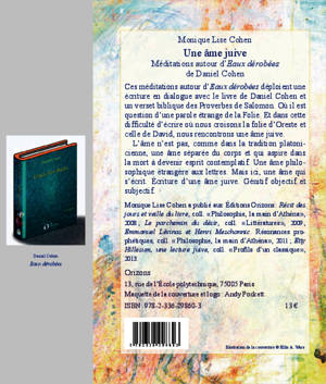 Ces méditations autour d'Eaux dérobées déploient une écriture en dialogue avec le livre de Daniel Cohen et un verset biblique des Proverbes de Salomon. Où il est question d'une parole étrange de la Folie. Et dans cette difficulté d'écrire où nous croisons la folie d'Oreste et celle de David, nous rencontrons une âme juive. L'âme ici est une âme qui s'écrit. Ecriture d'une âme juive. Génitif objectif et subjectif.