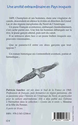 1609, Champlain et ses hommes descendent en silence la rivière en direction du Grand Lac et des régions inexplorées du Nord de l'Amérique. Un jeune Français, embarqué clandestinement, s'est caché parmi eux. Une fois les hommes débarqués sur la rive, le jeune garçon attend, puis sort du canot. Il se retrouve alors face à un jeune Indien iroquois aux pouvoirs visionnaires... Que se passera-t-il entre ces deux garçons que tout oppose ? Un roman historique où s'entremêlent aventure, poésie et fantastique...