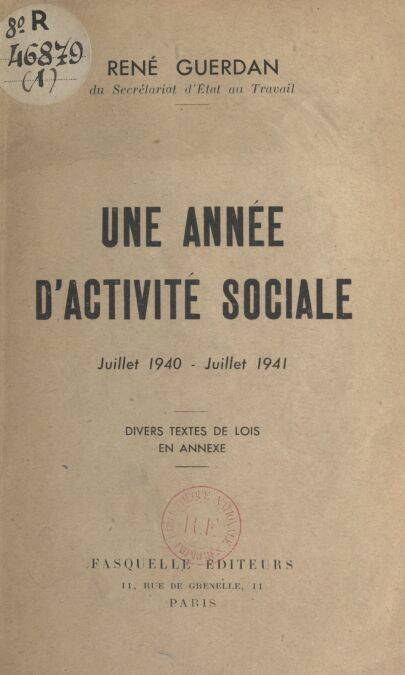 Une année d'activité sociale : juillet 1940 - juillet 1941 EBOOK