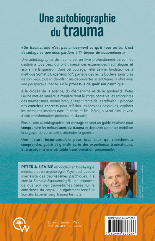 « Un traumatisme n’est pas uniquement ce qu’il nous arrive?; c’est davantage ce que nous gardons à l’intérieur de nous-mêmes. » Une autobiographie du trauma est un livre profondément personnel, destiné à tous ceux qui ont traversé des expériences traumatiques et aspirent à la guérison. Dans cet ouvrage, Peter Levine, fondateur de la méthode Somatic Experiencing®, partage des récits bouleversants tirés de son vécu, tout en dévoilant ses découvertes scientifiques. Il offre ainsi une perspective inédite sur le processus de guérison psychique. À la croisée de la science, du chamanisme et de la spiritualité, Peter Levine met en lumière la manière dont le corps conserve les empreintes des traumatismes, même lorsque l'esprit tente de les refouler. Il propose des exercices concrets pour relâcher les tensions physiques, explorer les mémoires inscrites dans le corps et les libérer, ouvrant ainsi la voie à une transformation profonde et durable. Plus qu’une autobiographie, cet ouvrage se veut un guide éclairant pour comprendre les mécanismes du trauma et découvrir comment mobiliser la sagesse du corps afin d’atteindre la guérison. Une lecture incontournable pour tous ceux qui cherchent à comprendre, guérir et grandir après des expériences traumatiques, et à accéder à une véritable transformation personnelle.