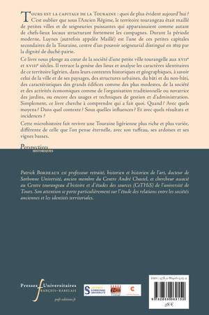 Ce livre nous plonge au coeur de la société d'une petite ville tourangelle aux XVIIe et XVIIIe siècles. Il retrace la genèse des lieux et analyse les caractères identitaires de ce territoire ligérien, dans leurs contextes historiques et géographiques, à savoir celui de la ville et de ses paysages, des structures urbaines, du bâti et du non-bâti, des caractéristiques des grands édifices comme des plus modestes, de la société et des activités économiques comme de l'organisation traditionnelle ou novatrice des jardins, ou encore des usages et techniques de gestion et d'administration. Simplement, ce livre cherche à comprendre qui a fait quoi. Quand ? Avec quels moyens ? Dans quel contexte ? Sous quelles influences ? Et avec quels résultats et incidences ?