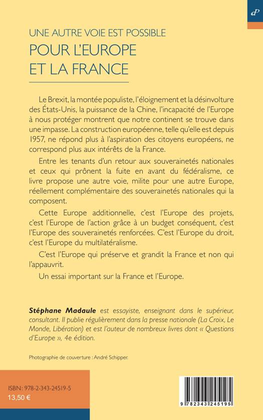 Le Brexit, la montée populiste, l’éloignement et la désinvolture des États-Unis, la puissance de la Chine, l’incapacité de l’Europe à nous protéger montrent que notre continent se trouve dans une impasse. La construction européenne ne répond plus à l’aspiration des citoyens européens, ne correspond plus aux intérêts de la France. Entre les tenants d’un retour aux souverainetés nationales et ceux qui prônent la fuite en avant du fédéralisme, cet ouvrage propose une autre voie, milite pour une autre Europe, réellement complémentaire des souverainetés nationales qui la composent. Cette Europe additionnelle, c’est l’Europe des projets, c’est l’Europe de l’action grâce à un budget conséquent, c’est l’Europe des souverainetés renforcées. C’est l’Europe du droit et du multilatéralisme. C’est l’Europe qui préserve et grandit la France.