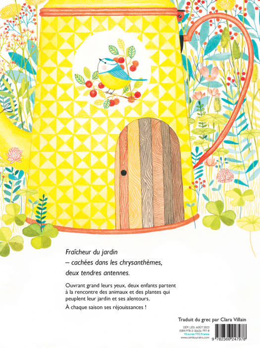 Ouvrant grand leur yeux, deux enfants partent à la rencontre des animaux et des plantes qui peuplent leur jardin et ses alentours. À chaque saison ses réjouissances !