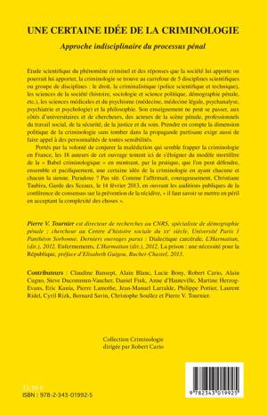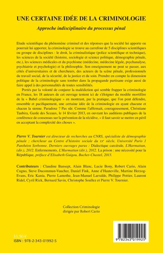 La criminologie se trouve au carrefour de 5 disciplines : le droit, la criminalistique (police scientifique et technique), les sciences de la société (histoire, sociologie...), les sciences médicales et du psychisme, et la philosophie. Prendre en compte la dimension politique de la criminologie exige de faire appel à des personnalités de toutes sensibilités. Les 18 auteurs de cet ouvrage tentent de défendre, par la pratique, une certaine idée de la criminologie en ayant chacun la sienne.