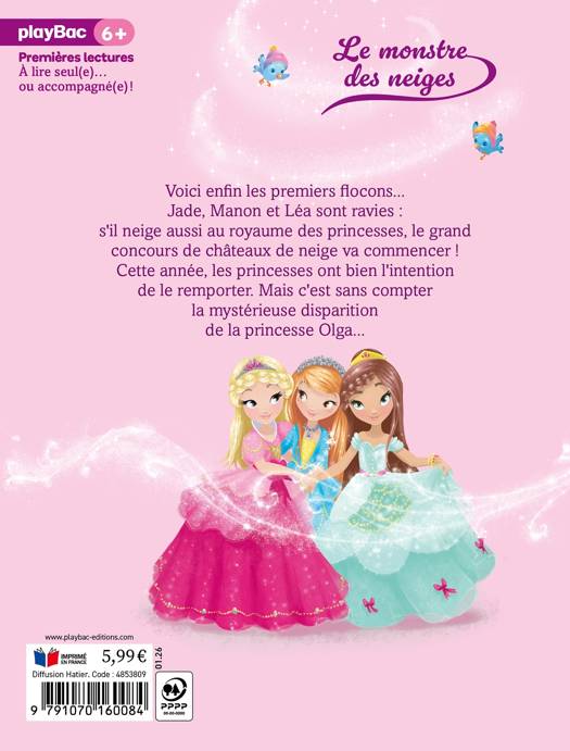 Voici enfin les premiers flocons... Jade, Manon et Léa sont ravies : s'il neige aussi au royaume des princesses, le grand concours de châteaux de neige va commencer ! Cette année, les princesses ont bien l'intention de le remporter. Mais c'est sans compter la mystérieuse disparition de la princesse Olga... * Dès 6 ans. À lire seul(e) ou accompagné(e). Chaque tome peut être lu indépendamment des autres.