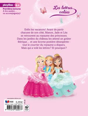 Enfin les vacances ! Avant de partir chacune de leur côté, Manon, Jade et Léa se retrouvent au royaume des princesses. Dans les jardins du château les attend un goûter féérique... et une licorne postière désespérée : tout le courrier du royaume a disparu. Mais qui a volé les lettres ? Et pourquoi ?
