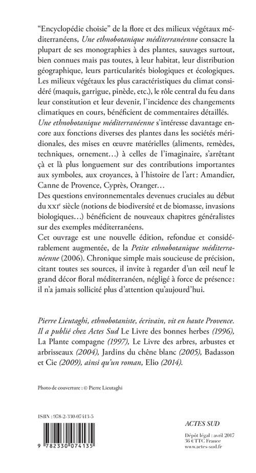 "Encyclopédie choisie" de la flore et des milieux végétaux méditerranéens, «Une ethnobotanique méditerranéenne» consacre la plupart de ses monographies à des plantes, sauvages surtout, bien connues mais pas toutes, à leur habitat, leur distribution géographique, leurs particularités biologiques et écologiques. Les milieux végétaux les plus caractéristiques du climat considéré (maquis, garrigue, pinède, etc.), le rôle central du feu dans leur constitution et leur devenir, l'incidence des changements climatiques en cours, bénéficient de commentaires détaillés.
