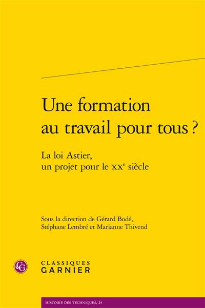 La loi Astier du 25 uillet 1919 est une étape incontournable dans l'histoire de l'enseignement technique en France. Elle définit formellement l'enseignement technique et impose une obligation de formation aux jeunes filles et garçons de moins de 18 ans employés dans le commerce et l'industrie. Un siècle après son adoption, le présent ouvrage propose une lecture des conditions d'élaboration du texte et de ses effets dans les décennies suivantes. Croisant histoire de l'éducation et histoire du travail, il situe l'enseignement technique au coeur des transformations économiques, sociales et politiques de la France au XXe siècle, en proposant également l'exploration de cas étrangers afin de prendre la mesure de la spécificité de la France.