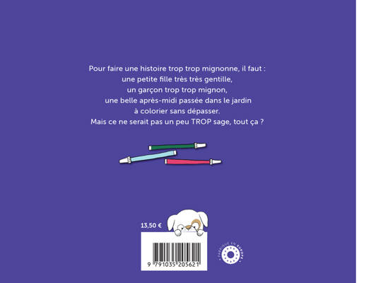 Pour faire une histoire trop trop mignonne, il faut : une petite fille très très gentille, un garçon trop trop mignon, une belle après-midi passée dans le jardin à colorier sans dépasser. Mais ce ne serait pas un peu TROP sage, tout ça ?