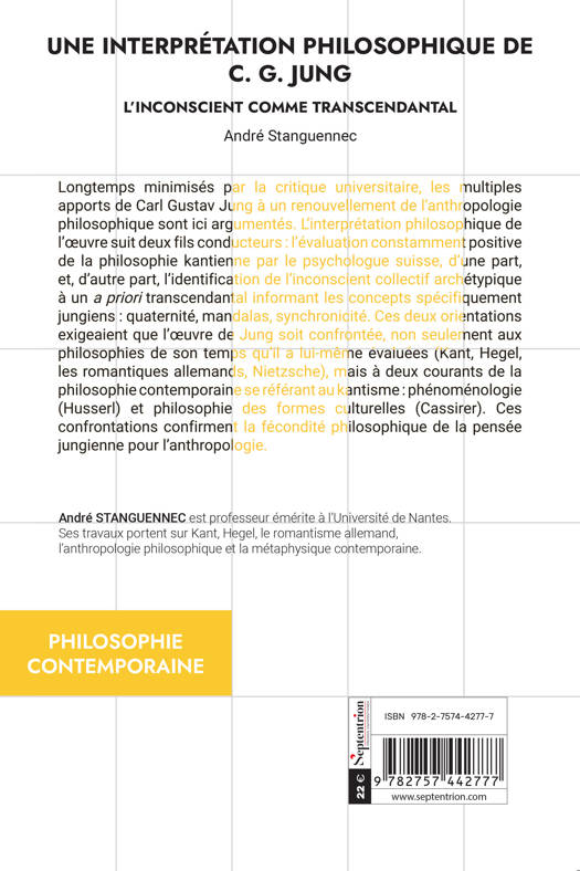 Longtemps minimisée par la critique universitaire, l’oeuvre de C. G. Jung s’inscrit explicitement dans le sillage de celle de Kant, tout en contribuant à un renouvellement de l’anthropologie philosophique.