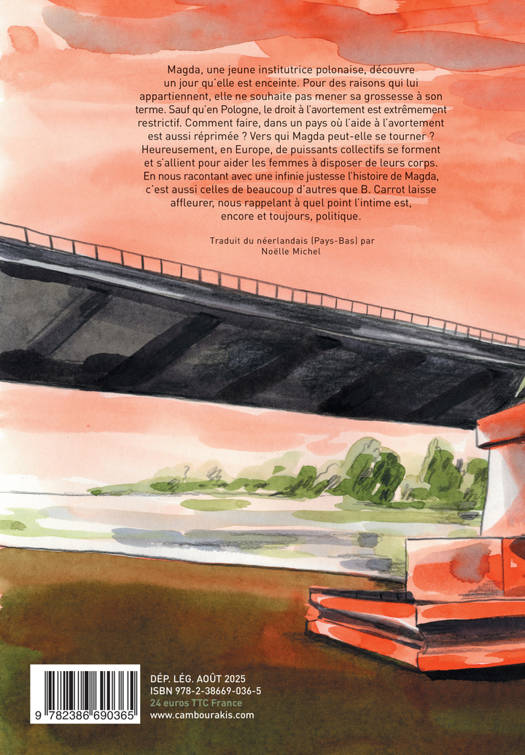 Magda, une jeune institutrice polonaise, découvre un jour qu'elle est enceinte. Pour des raisons qui lui appartiennent, elle ne souhaite pas mener sa grossesse à son terme. Sauf qu'en Pologne, le droit à l'avortement est extrêmement restrictif. Comment faire, dans un pays où l'aide à l'avortement est aussi réprimée ? Vers qui Magda peut-elle se tourner ? Heureusement, en Europe, de puissants collectifs se forment et s'allient pour aider les femmes à disposer de leurs corps. En nous racontant avec une infinie justesse l'histoire de Magda, c'est aussi celles de beaucoup d'autres que B. Carrot laisse affleurer, nous rappelant à quel point l'intime est, encore et toujours, politique.