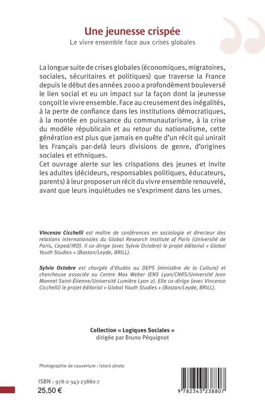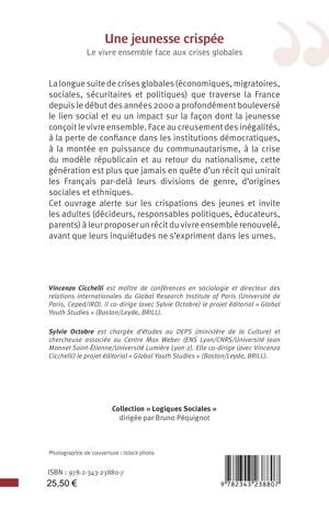 La longue suite de crises globales que traverse la France depuis le début des années 2000 a profondément bouleversé le lien social et eu un impact sur la façon dont la jeunesse conçoit le vivre ensemble. Face au creusement des inégalités, à la perte de confiance dans les institutions démocratiques,à la montée en puissance du communautarisme, et au retour du nationalisme, cette génération est plus que jamais en quête d’un récit qui unirait les Français par-delà leurs divisions de genre, d’origines sociales et ethniques. Cet ouvrage alerte sur les crispations des jeunes et invite les adultes à leur proposer un récit du vivre ensemble renouvelé, avant que leurs inquiétudes ne s’expriment dans les urnes.