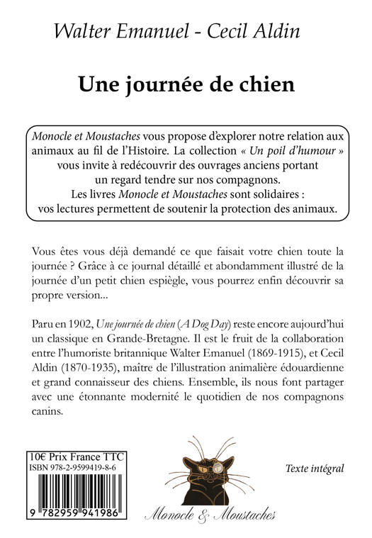 Paru en 1902, Une journée de chien (A Dog Day) reste encore aujourd’hui un classique en Grande-Bretagne. Il est le fruit de la collaboration entre l’humoriste britannique Walter Emanuel (1869-1915), et Cecil Aldin (1870-1935), maître de l’illustration animalière édouardienne et grand connaisseur des chiens. Ensemble, ils nous font partager avec une étonnante modernité le quotidien de nos compagnons canins.