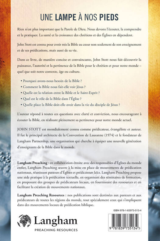 Dans ce livre, de manière concise et convaincante, John Stott nous fait découvrir la puissance, l'autorité et la pertinence de la Bible pour le chrétien et pour notre monde - quel que soit notre contexte, âge ou culture.