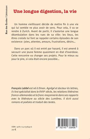 Un homme vieillissant décide de mettre fin à une vie qui lui semble ne plus avoir de sens. Pour cela, il va se rendre à Zurich. Avant de partir, il s’autorise une longue déambulation dans les rues de sa ville : les lieux, les êtres croisés lui font se rappeler certains épisodes de son existence : joies, attentes, amours, frustrations, désirs… Dans un parc où il est entré par hasard, il est amené à secourir une jeune femme quasiment en état d’overdose. Cette rencontre va changer ses projets. Pour le mieux ou pour le pire, si cela était encore possible…