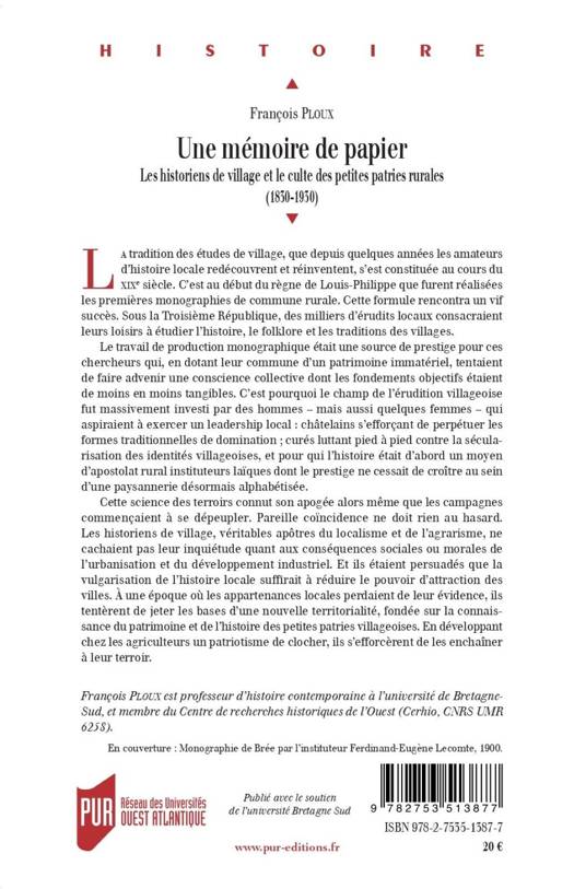 Cette science des terroirs connut son apogée alors même que les campagnes commençaient à se dépeupler. Pareille coïncidence ne doit rien au hasard. Les historiens de village, véritables apôtres du localisme et de l’agrarisme, ne cachaient pas leur inquiétude quant aux conséquences sociales ou morales de l’urbanisation et du développement industriel. Et ils étaient persuadés que la vulgarisation de l’histoire locale suffirait à réduire le pouvoir d’attraction des villes. À une époque où les appartenances locales perdaient de leur évidence, ils tentèrent de jeter les bases d’une nouvelle territorialité, fondée sur la connaissance du patrimoine et de l’histoire des petites patries villageoises. En développant chez les agriculteurs un patriotisme de clocher, ils s’efforcèrent de les enchaîner à leur terroir.