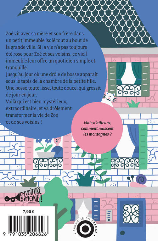 Zoé vit avec sa mère et son frère dans un petit immeuble isolé tout au bout de la grande ville. Si la vie n'a pas toujours été rose pour Zoé et ses voisins, ce vieil immeuble leur offre un quotidien simple et tranquille. Jusqu'au jour où une drôle de bosse apparaît sous le tapis de la chambre de la petite fille. Une bosse toute lisse, toute douce, qui grossit de jour en jour. Voilà qui est bien mystérieux, extraordinaire, et va drôlement transformer la vie de Zoé et de ses voisins !