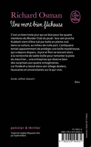 C’est un bien triste jour qui se lève pour les quatre membres du Murder Club du jeudi : leur ami proche Kuldesh vient d’être tué par balle en pleine nuit, dans sa voiture, au milieu de nulle part. L’antiquaire tentait apparemment de protéger un paquet mystérieux, qui a depuis disparu. Joyce et Ron se lancent alors à la recherche de l’objet pour remonter la piste du meurtrier… une entreprise qui réserve bien des surprises aux quatre octogénaires, car Kuldesh a laissé dans son sillage dealers, faussaires et universitaires sur le qui-vive.
