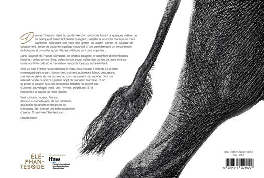 Deviner l’intention dans la pupille fixe d’un crocodile flottant à quelques mètres de sa planque et finalement baisser le regard ; assister à la victoire d’une jeune mère éléphante défendant son petit des griffes de quatre lionnes et soupirer de soulagement ; tenter de discerner le pelage moucheté d’une panthère dans un enrochement de buissons et constater qu’en ville, les imitations sont plus voyantes... <br /> Dans l’objectif de Francis Bompard, les photos bougent et racontent d’innombrables histoires : celles de nos rêves, celles de nos peurs, celles des contes de notre enfance ou de nos films culte où le merveilleux l’emporte toujours sur le terrifiant. <br /> Avec ce livre, Francis nous prend par la main, nous installe à côté de lui et place notre regard dans le sien. Alors on voit, vraiment, autrement. Mieux, on surprend une nature pleine de vie comme au commencement du monde, dont on aimerait qu’elle ne soit plus jamais objet de prédation humaine. Et on se prend à espérer que ces séquences fortuites ne seront pas d’ultimes sauvetages mais des hymnes perpétuels à la beauté et à la fragilité de notre planète. <br /> Il est tombé amoureux, Francis. <br /> Amoureux du Botswana, de ses habitants, <br /> des soleils couchants et des bruits de <br /> la brousse. Son livre est une belle déclaration d’amour. <br /> On a envie d’être témoins... <br /> Claudie Blanc