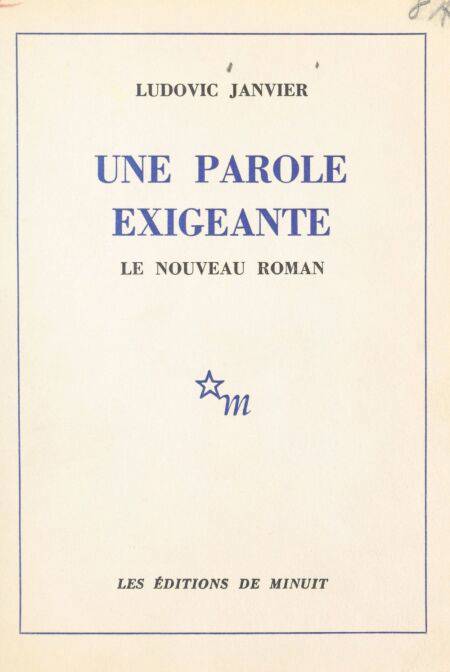 "Nous faisons porter notre analyse sur quatre œuvres : celles de Nathalie Sarraute, Claude Simon, Alain Robbe-Grillet et Michel Butor. Ce sont à la fois les plus représentatives et les plus achevées d’une tendance qui n’en est certes plus à se définir mais dont l’éparpillement actuel en de multiples directions — signe de vitalité — empêche l’observateur d’opérer aujourd’hui une synthèse qui ne soit pas, demain, périmée. Le Nouveau Roman est donc saisi au début de sa démarche. C’est dire que le même travail reste à faire pour les œuvres de Claude Ollier, Robert Pinget, Jean-Pierre Faye, les écrivains du groupe Tel Quel, afin de situer un jour ces recherches qui, s’appuyant entre autres exemples sur les expériences capitales de Michel Leiris1 et de Samuel Beckett et menant jusqu’à une révolution totale dans l’écriture, font véritablement apparaître comme éclatant l’avenir de la littérature romanesque." Ludovic Janvier