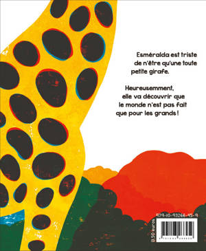 Esméralda est petite. Trop petite. Elle aimerait tellement s'amuser avec les autres girafes ! Heureusement, la savane se révèle un grand terrain de jeux où Esméralda va découvrir le monde des plus petits...