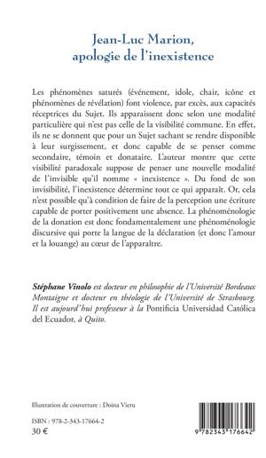 Les phénomènes saturés (événement, idole, chair, etc.) font violence, par excès, aux capacités réceptrices du Sujet. Ils apparaissent hors de la visibilité commune. En effet, ils ne se donnent que pour un Sujet disponible à leur surgissement, et donc capable de se penser comme secondaire. L'auteur montre que cette visibilité paradoxale suppose une nouvelle modalité de l'invisible : l'inexistence. C'est elle qui détermine ce qui apparaît. Mais ce n'est possible qu'à condition de faire de la perception une écriture capable de porter positivement une absence. La phénoménologie de la donation est donc fondamentalement discursive, elle porte la langue de la déclaration (et donc l'amour et la louange) au coeur de l'apparaître.