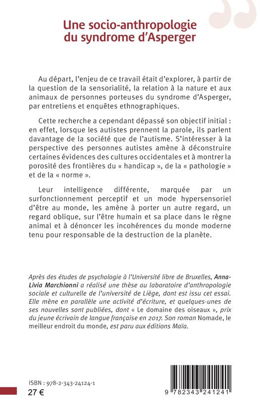 Au départ, l’enjeu de ce travail était d’explorer, à partir de la question de la sensorialité, la relation à la nature et aux animaux de personnes porteuses du syndrome d’Asperger, par entretiens et enquêtes ethnographiques. Cette recherche a cependant dépassé son objectif initial : en effet, lorsque les autistes prennent la parole, ils parlent davantage de la société que de l’autisme. S’intéresser à la perspective des personnes autistes amène à déconstruire certaines évidences des cultures occidentales.Leur intelligence différente, marquée par un surfonctionnement perceptif, les amène à porter un autre regard, un regard oblique, sur l’être humain et sa place dans le règne animal et à dénoncer les incohérences du monde moderne tenu pour responsable de la destruction de la planète.