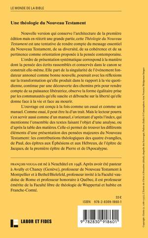 Nouvelle édition qui conserve l’architecture de la première version mais en réécrit une grande partie, cette Théologie du Nouveau Testament est une tentative de rendre compte du message essentiel du Nouveau Testament, de sa diversité, de sa cohérence et de sa pertinence comme orientation proposée à la pensée contemporaine. L’ordre de présentation systématique correspond à la manière dont la pensée des écrits rassemblés et conservés dans le canon se construit elle-même. Elle part de la singularité de l’événement fondateur annoncé comme bonne nouvelle, poursuit avec les réflexions sur la transformation qu’elle produit dans le rapport à la vie quotidienne, continue par une découverte des chemins pris pour rendre compte de sa puissance libératrice, observe la forme égalitaire prise par les communautés qu’elle suscite et débouche sur la liberté qu’elle donne face à la vie et face au mourir. L’ouvrage est conçu à la fois comme un essai et comme un manuel. Comme essai, il peut être lu d’un trait. Mais le lecteur pourra s’en servir aussi comme d’un manuel, s’orientant d’après l’index ou d’après la table des matières. Celle-ci permet de trouver les différents éléments d’une présentation des pensées majeures du Nouveau Testament : les contributions théologiques des quatre évangiles, de Paul, des épîtres aux Éphésiens et aux Hébreux, de l’épître de Jacques, de la première épître de Pierre et de l’Apocalypse.