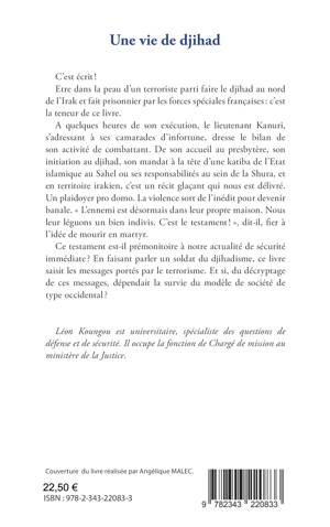 Etre dans la peau d’un terroriste parti faire le djihad au nord de l’Irak et fait prisonnier par les forces spéciales françaises constitue l'objet de ce livre. A quelques heures de son exécution, le lieutenant Kanuri, s’adressant à ses camarades d’infortune, dresse le bilan de son activité de combattant. De son accueil au presbytère, son initiation au djihad, son mandat à la tête d’une katiba de l’Etat islamique au Sahel ou ses responsabilités au sein de la Shura, en territoire irakien, c’est un récit glaçant qui nous est délivré. Ce testament est-il prémonitoire à notre actualité de sécurité immédiate? En faisant parler un soldat du djihadisme, ce livre saisit les messages portés par le terrorisme.