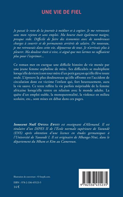 Ce roman met en exergue une difficile histoire de vie menée par une jeune femme orpheline de mère. Ses difficultés se multiplient lorsqu'elle devient à son tour mère d'un petit garçon qu'elle élève toute seule. L'épreuve la plus douloureuse qu'elle affronte est l'accident de circulation dont est victime l'enfant qui, fort heureusement, aura la vie sauve. Ce texte reflète la vie parfois méprisable de la femme africaine lorsqu'elle rentre en relation avec le monde adulte. La quête d'un emploi stable, la monoparentalité, la violence en milieu scolaire, etc., sont mises en débat dans ces pages.