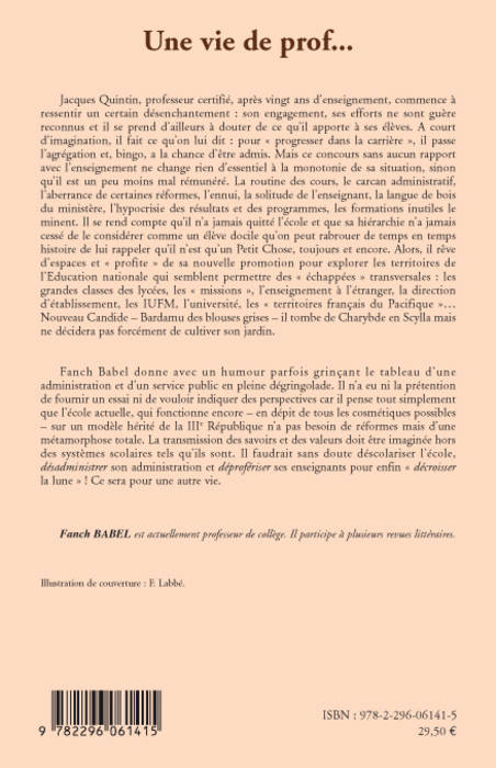 Jacques Quintin, professeur certifié, après vingt ans d'enseignement, commence à ressentir un certain désenchantement : son engagement, ses efforts ne sont guère reconnus et il se prend d'ailleurs à douter de ce qu'il apporte à ses élèves. L'auteur donne avec un humour parfois grinçant le tableau d'une administration et d'un service public en pleine dégringolade.