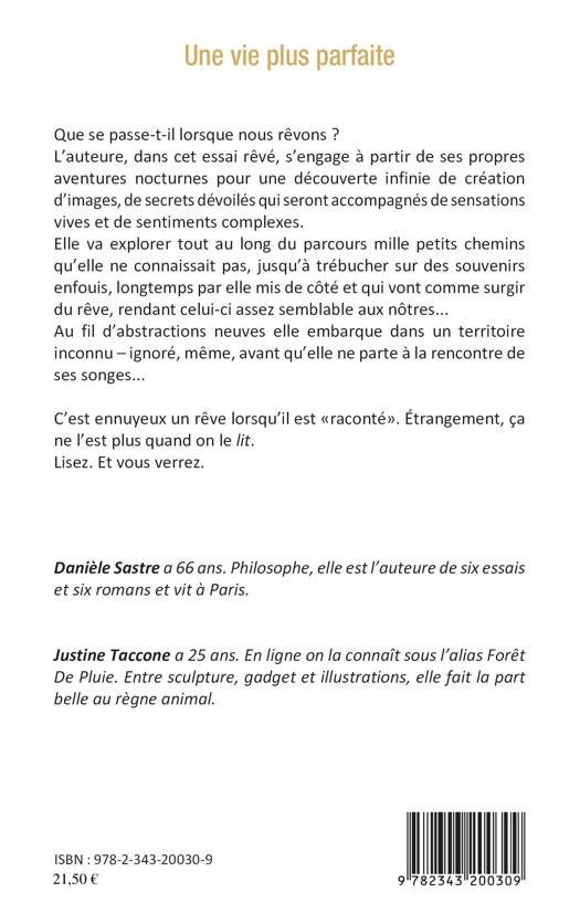 Peut-on bâtir un essai dans le domaine des sciences humaines à partir de ses propres rêves, quand le terrain de la philosophie, qui n'est ni littérature ni poésie pas plus que psychologie, se situe sur le socles d'idées le plus souvent abstraites émises depuis longtemps ? L'auteure, dans cet essai rêvé, s'engage à partir de ses propres aventures nocturnes pour une découverte infinie de création d'images, de secrets dévoilés qui seront accompagnés de sensations vives et de sentiments complexes. Elle va explorer tout au long du parcours mille petits chemins qu'elle ne connaissait pas, jusqu'à trébucher sur des souvenirs enfouis, longtemps mis de côté et qui vont comme surgir du rêve, rendant celui-ci assez semblable aux nôtres.