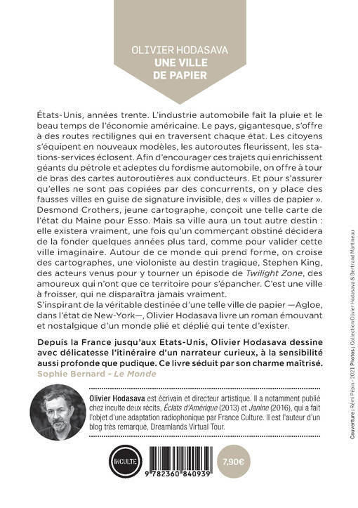 S'inspirant de la véritable destinée d'une telle ville de papier —Agloe, dans l'état de New-York—, Olivier Hodasava livre un roman émouvant et nostalgique d'un monde plié et déplié qui tente d'exister.