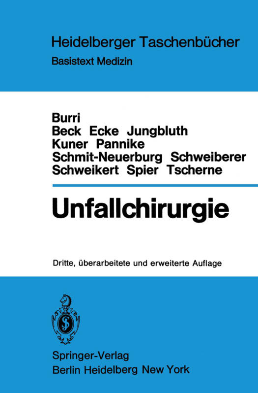 Nach dem 2. Weltkrieg haben Unfallverletzungen in Fabriken und Gewerbebetrieben, beim Hoch-und Tief bau, im Verkehr, beim Sport und im Haushalt trotz aller Schutzvorkehrungen (VerhiitungsmaBnahmen) von J ahr zu J ahr in ungeahntem AusmaB an Zahl und Schwere zugenommen. Etwa ein Drittel der Betten in Chirurgischen Kliniken und Krankenhausabteilungen sind mit Unfallverletzten belegt. Die absolute Zahl der Unfalle wird - wenn auch nicht so erheblich wie in den letzten Jahren - auch in der Zukunft noch steigen. Nicht a1lein diese Tatsachen, sondern auch die Wand lung in der Behandlung von Unfallverletzten von den friiher weitgehend konservativen MaBnahmen zu einem jetzt haufiger operativen Vorgehen haben zu einer in tensiveren Beschaftigung zahlreicher Chirurgen mit der U nfa1lchirurgie und damit zu einer Spezialisierung gefiihrt. Bei aller Spezialisierung muB aber die Unfall chirurgie schon im Hinblick auf ihre eigene Entwicklung ein integrierter Bestandteil im Rahmen der Gesamt chirurgie und jeder chirurgischen Ausbildung von Stu denten und Assistenten bleiben. Die Leiter von unfallchirurgischen Abteilungen in deutschen Universitatskliniken haben sich - wie ich glaube erfolgreich -bemiiht, fiir den Unterricht und fiir das praktische Arbeiten von Studenten und Assistenten in der Traumatologie ein einheitliches Skriptum zu schaffen, in dem die Grundziige unfa1lchirurgischen Denkens, Entscheidens und Handels in gedrangter Form dargestellt sind. Der Verpflichtung, akute unfa1l chirurgische Situationen zu erkennen und geeignete SofortmaBnamen zu ergreifen, kann sich kein Arzt entziehen."