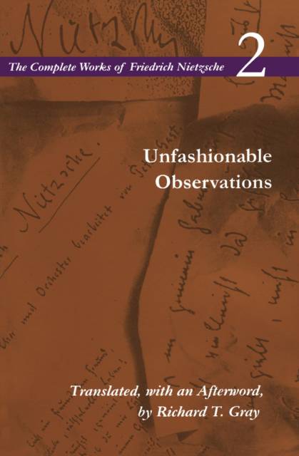 The Unfashionable Observations are foundational works for Nietzsche's entire philosophy, prefiguring both his characteristic philosophical style and many of the major ideas he would develop in his later writings. This is the first English translation to include Nietzsche's variants to the published text.
