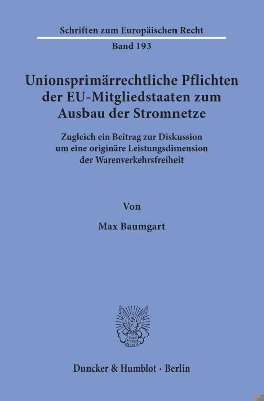 Energiebinnenmarkt und Energieunion sind nur mithilfe eines ausreichend ausgebauten Stromnetzes zu verwirklichen. Auch um den Energiebinnenmarkt und die vermehrte Erzeugung und Einspeisung volatiler Erneuerbarer Energien zu vereinbaren, ist ein weiterer Netzausbau unabdingbar. Dazu leistet die Arbeit einen Beitrag, indem sie eine rechtliche und nicht nur okonomische oder politische Grundlage fur eine Pflicht zum Ausbau der Stromnetze auf der Grundlage des EU-Primarrechts herausarbeitet. Sie knupft dazu insbesondere an die rechtsdogmatische Frage an, ob die Vorschriften zum freien Warenverkehr uber ihre abwehrrechtliche und schutzrechtliche Dimension eine originare Leistungspflicht zur Schaffung und Gewahrleistung von Infrastruktur enthalten, welche sich in einer Pflicht der EU-Mitgliedstaaten zum Ausbau ihrer Stromnetze konkretisiert. Daruber hinaus befasst sie sich begleitend mit der allgemeinen EU-rechtlichen Loyalitatspflicht und dem EU-Kartellrecht.