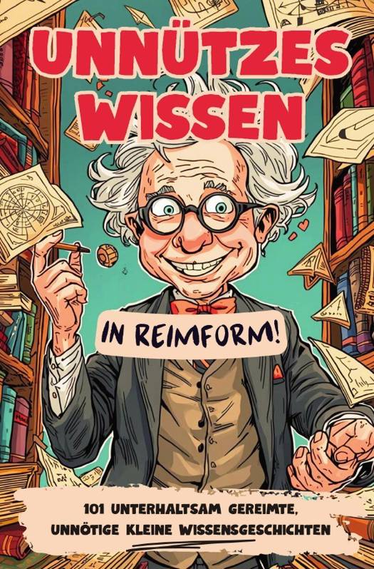 Unnützes Wissen in Reimform - Das spaßige Buch mit gewitzt gereimten unnützen Wissens-Anekdoten aus aller Welt! Lies auf jeder Seite jeweils ein Gedicht zu Begebenheiten, Fakten und Legenden über den Menschen, erstaunliche Tiere, faszinierende Pflanzen, allzumenschliche Künstler, rätselhafte und fragwürdige Kultur, kuriose Erfindungen, Hintergründe der Technik, abenteuerliche geschichtliche Ereignisse ... Immer humorvoll gereimt und unterhaltsam illustriert. Dieses besondere Buch des unnützen Wissens bringt dich zum Staunen, Schmunzeln, Nachdenken und bestimmt hin und wieder auch zum Lachen!Das sind die Kapitel und Themengebiete, die du in "Unnützes Wissen - in Reimform!" findest: - Mensch & Körper - Kunst & Kultur - Geschichte & Legenden - Erfindungen & Entdeckungen - Wissenschaft & Technik - Tiere & Pflanzen - Skurrile KlogeschichtenFür jugendliche Teenager und Erwachsene jeden Alters mit Spaß an unterhaltsam gereimten, unnützen kleinen Wissensgeschichten.Und übrigens: Alle Reime sind mit Herz & Hirn komplett selbst und von Hand verfasst!- - Schenke dir selbst und/oder jemand anderem Lieben gleich jetzt ein Exemplar von "Unnützes Wissen - in Reimform!" und werde auf kurzweilige Art ganz nebenbei völlig unnötig schlauer! --