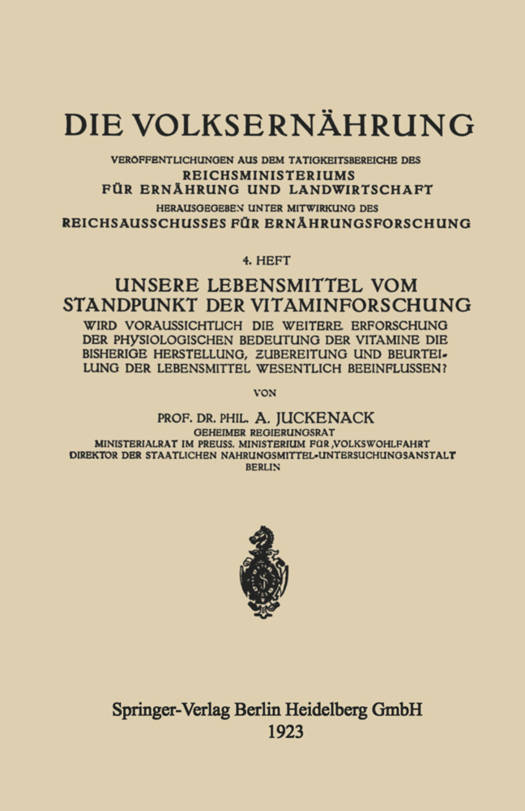 Dieser Buchtitel ist Teil des Digitalisierungsprojekts Springer Book Archives mit Publikationen, die seit den Anfängen des Verlags von 1842 erschienen sind. Der Verlag stellt mit diesem Archiv Quellen für die historische wie auch die disziplingeschichtliche Forschung zur Verfügung, die jeweils im historischen Kontext betrachtet werden müssen. Dieser Titel erschien in der Zeit vor 1945 und wird daher in seiner zeittypischen politisch-ideologischen Ausrichtung vom Verlag nicht beworben.