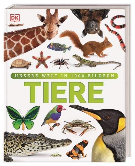 Unterteilt nach den großen Tiergruppen wirbellose Tiere und Insekten, Fische, Amphibien, Reptilien, Vögel und Säugetiere werden 1500 verschiedene Arten mit Bild vorgestellt. Eine kurze Einführung präsentiert jede Tiergruppe mit Merkmalen und Besonderheiten. Beeindruckende Galerieseiten zeigen mehrere Arten nebeneinander. So können Kinder auf einen Blick sehen, wie viele unterschiedliche Schmetterlinge oder Haie existieren und welche Gemeinsamkeiten und Unterschiede es zwischen den Arten gibt. Steckbriefe informieren über Aussehen, Lebensweise und Verhalten und eine Grafik zeigt den Größenvergleich zum Menschen. Ein besonderes Highlight sind doppelseitige Fotos, die Tiere in ihrer natürlichen Umgebung zeigen.