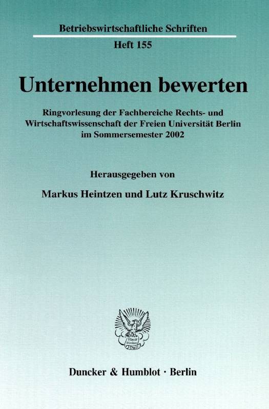 Das vorliegende Buch enthält die zehn Vorträge, die im Sommersemester 2002 an der Freien Universität Berlin im Rahmen einer Ringvorlesung »Unternehmensbewertung« gehalten wurden. Ziel der von den Fachbereichen Rechts- und Wirtschaftswissenschaft organisierten Ringvorlesung war, Gemeinsamkeiten und Unterschiede zwischen der juristischen und der ökonomischen sowie zwischen einer wissenschaftlichen und einer praktischen Herangehensweise an die Unternehmensbewertung deutlich werden zu lassen.