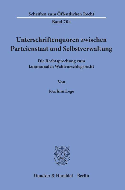 Bei Kommunalwahlen, aber auch bei sonstigen Wahlen im öffentlich-rechtlichen Bereich, wird zwischen "etablierten" und "neuen" Parteien bzw. Wählergruppen unterschieden: Die Wahlvorschläge der "Etablierten", die bereits in den zu wählenden Gremien (oder auch in anderen) vertreten sind, unterliegen geringeren Anforderungen als die Wahlvorschläge "neuer" Bewerber. Insbesondere müssen "neue" Wahlbewerber eine gewisse Anzahl von Unterstützungsunterschriften beibringen.Die Frage, inwieweit solche Unterschriftenquoren gerechtfertigt sind, war mehrfach Gegenstand der Rechtsprechung, und sie ist derzeit beim BVerfG anhängig. In dieser Situation will die vorliegende Untersuchung betonen, daß das Recht auf gleichen Zugang zur Wahl nur aus besonderen, zwingenden Gründen beschränkt werden darf und daß im Kommunalrecht die politischen Parteien nicht zu Lasten der örtlichen Kräfte privilegiert werden dürfen.Unterschriftenquoren dürfen demnach allein dazu dienen, die Zahl der Wahlvorschläge aus Praktikabilitätsgründen zu beschränken. Ferner dürfen die Höhe der Quoren, aber auch die Modalitäten der Unterschriftsleistung nicht gegen das Übermaßverbot verstoßen. Vor allem aber ist - und insofern tritt die Untersuchung einer ganz herrschenden Meinung entgegen - die Privilegierung der "etablierten" gegenüber den "neuen" Bewerbern mangels zwingenden Grundes nicht zu rechtfertigen.