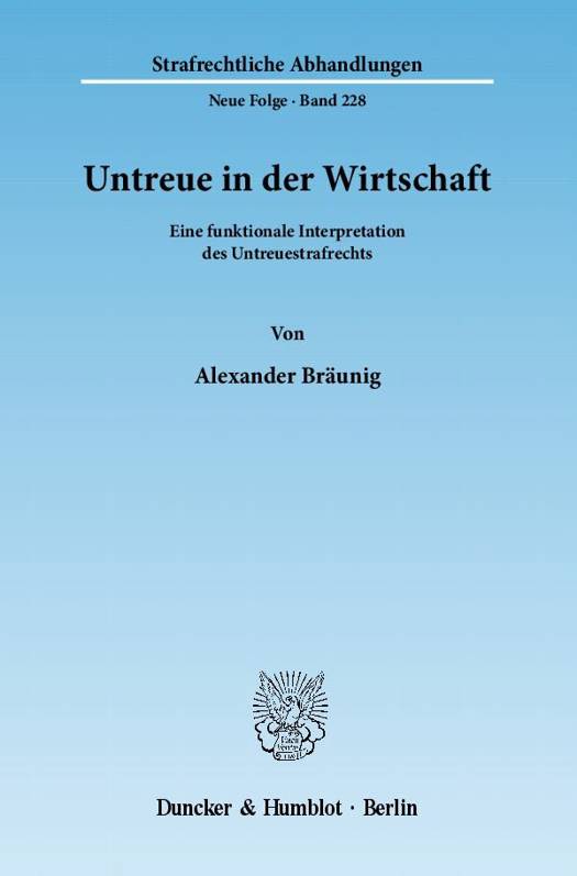 Prominente Strafverfahren im Untreuesektor, etwa im Zusammenhang mit Managervergütungen, Kreditvergaben, Lustreisen, Parteispenden oder schwarzen Kassen, veranschaulichen - ebenso wie die besondere Häufigkeit von Verfahrenseinstellungen durch die Staatsanwaltschaft - in besonderer Weise die Kritik an der Unterbestimmtheit des 266 StGB. Alexander Bräunig untersucht die aus dieser Unterbestimmtheit resultierenden Anwendungsprobleme des Untreuestrafrechts und zeigt auf, dass im Rahmen seines Zugriffs auf das Wirtschaftsleben teilweise eine derart ausgeweitete Anwendung stattfindet, dass die Eigenlogik wirtschaftlicher Prozesse unberücksichtigt bleibt oder gar beeinträchtigt wird, ohne dass dies rechtlich zwingend wäre. Der Vorschlag einer funktionalen Interpretation ermöglicht Auslegungsregeln des 266 StGB, die die Anwendungsvoraussetzungen klarer konturieren lassen, und leistet damit zugleich einen Beitrag zur Harmonisierung von Rechts- und Wirtschaftssystem.