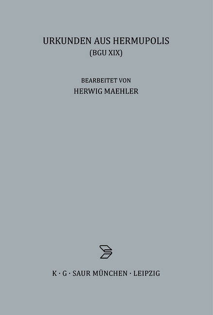 Also: Ägyptische Urkunden aus den Staatlichen Museen zu Berlin, Griechische Urkunden, volume XIX (BGU XIX)