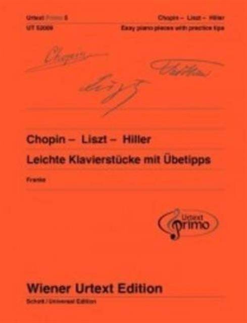This volume presents easy pieces for piano by great virtuosos. It unites the two greatest, and perhaps best-known, pianists of the 19th century, Frédéric Chopin and Franz Liszt. The technical requirements of these works are very moderate without muting the stylistic characteristics of these two composers. The ability to play an original composition by Liszt in the first years of lessons can be very motivating for the piano student. Also featured in this collection are works by the virtuoso Ferdinand Hiller, to whom Robert Schumann dedicated his Piano Concerto. As in many of the works by Liszt and Chopin, Hiller's works are frequently reminiscent of folk music. His Irländisches Lied and Fandango, included in the collection, are fine examples of 19th-century 'world music'. Instrumentation: piano